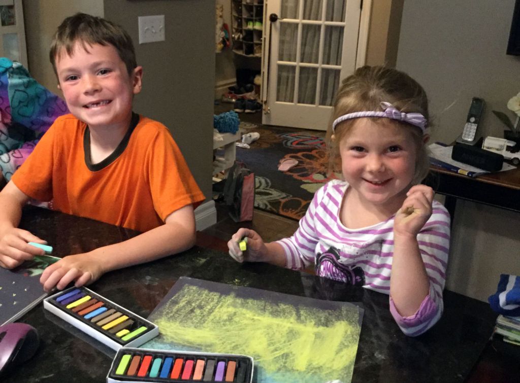 There is fighting at the island during Morning Time, spilled cereal, stool spinning, and sometimes a hangry mama! But we just stop and then keep going! I can get so ashamed when I have YELLED during devotions! But, again, repent, apologize, and move on. I have asked the children to not be doing anything else other than eating during our Bible portion, but as we move into other subjects/activities during Morning Time I let them draw, color, use Thinking Putty, sticker books, or other quiet activities. My youngest child was free to go and play alone.